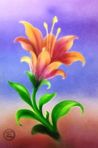 Eine Lilie wird ab Montag gemalt Es geht im Prinzip darum, gewölbte Flächen darzustellen und zu sprühen. Dabei ist wichtig