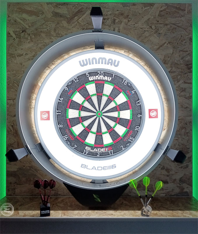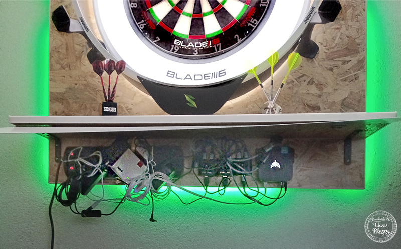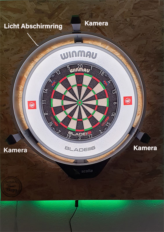ist die Technik. Jetzt kann ich mit Scolia Home 2 und Autodarts spielen. Es wurde der Unterbau (Brett) angebracht und ein Alu-Blech als Klappe drunter gesetzt, um die Technik zu schätzen. Die Kameras gehen zunächst in einzelne Umschalter und von dort aus in den Scolia Rechner und in den Mini-PC. Per Schalter werden entweder Scolia oder Autodarts (Mini-PC) gestartet. Um Autodarts zu spielen verbinde ich mich mit meinem Notebook per Remote Control mit dem Mini-PC und starte Autodarts. Von nun an kann ich mich mit einem Smartfon, Tablet, PC, etc per Webbrowsser auf der Autodarts Internetseite anmelden und spielen. Nach Spielende fahre ich den Mini PC über Remote Control wieder herunter. Sollte Windows Updates etc. benötigen, habe ich vollen Zugang, um Wartungsarbeiten durchzuführen.