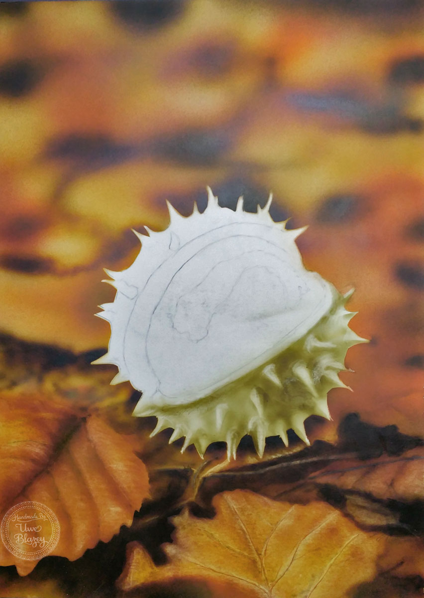 Die Kastanie ist noch in Arbeit. Der Hintergrund ist fast angelegt und der Fokus muss jetzt konkreter werden.